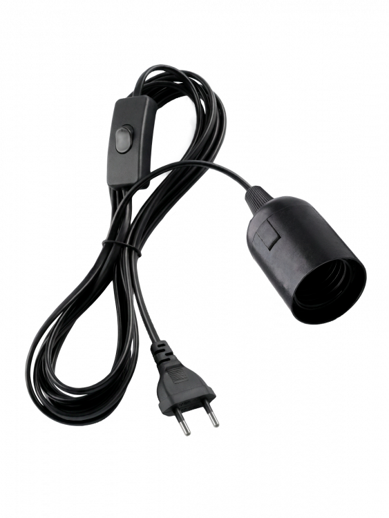Патрон E27 с проводом и выключателем 1.8м Орбита OT-ELS11 Черный