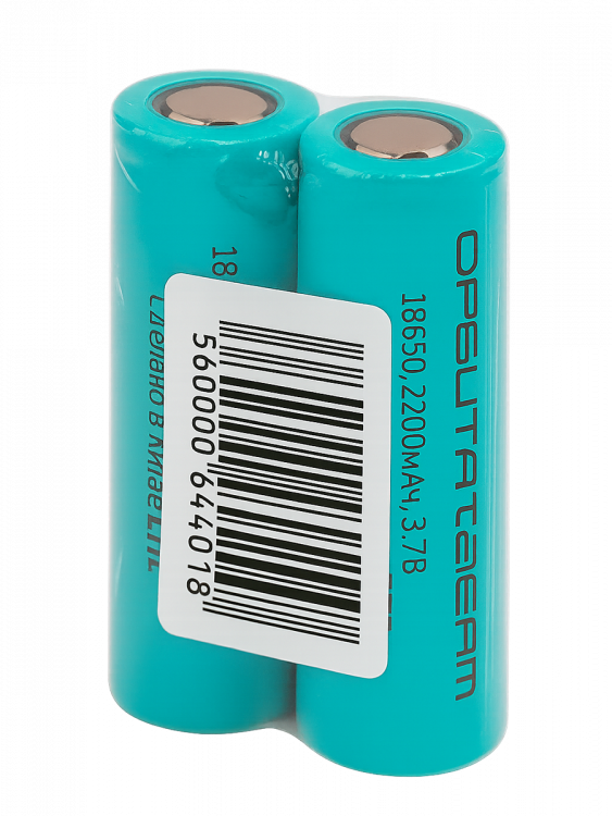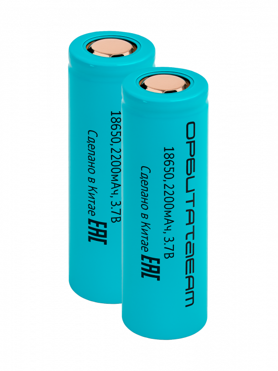 Аккумулятор 18650 3.7v 2200мАч плоский пин, 2шт Орбита