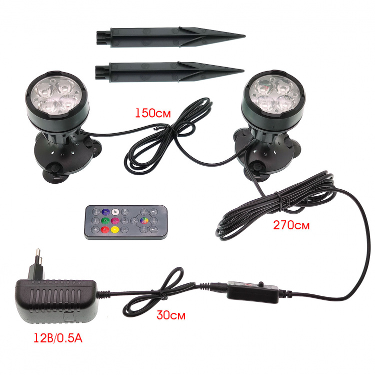 | блок питания 12В/0.5А, пульт ДУ, инструкция на Английском |