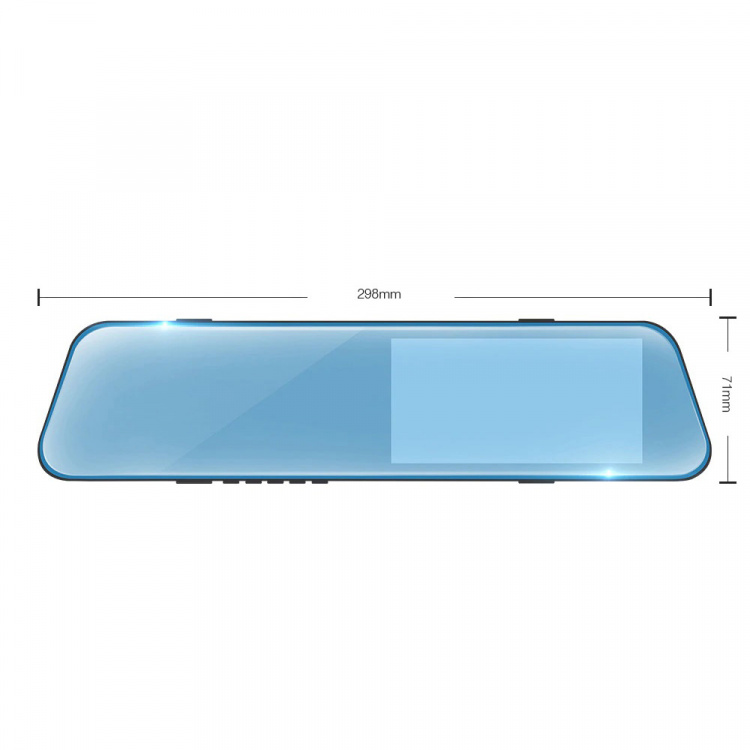 | видеорегистратор, кабель питания 1.5м, камера заднего вида, крепление на зеркало, инструкция на Русском |