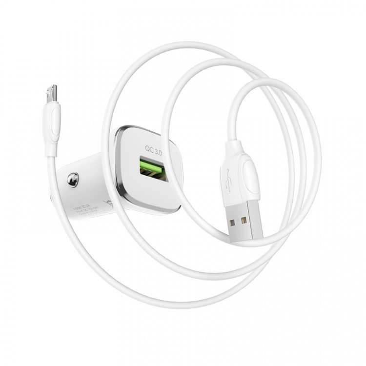 BOROFONE BZ12A Белый ЗУ авто USB + кабель Micro USB (QC3.0, 3000mA)