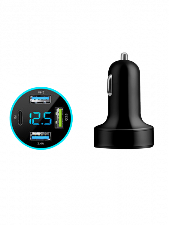 Автомобильное зарядное устройство QC 3.0 с вольтметром и тер...
