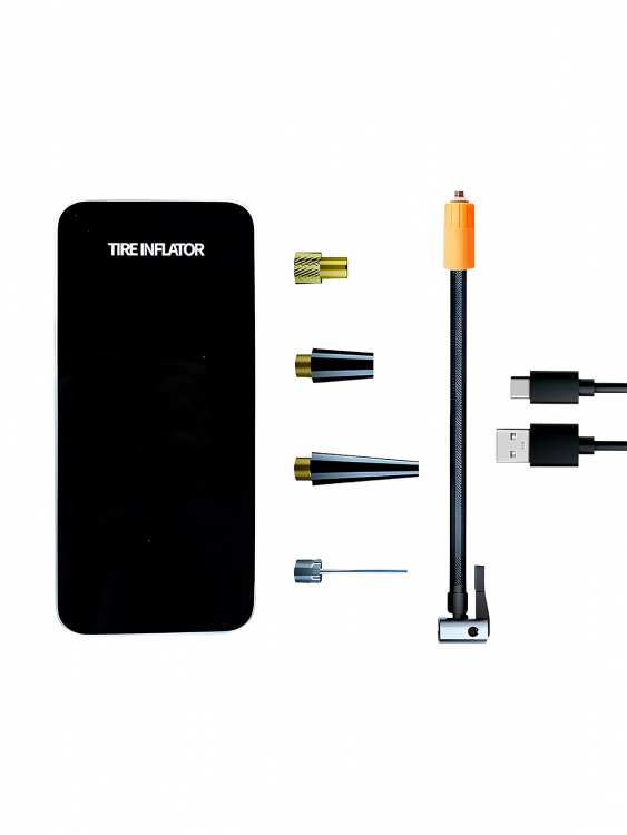| Компрессор, 4 насадки, кабель ЗУ, инструкция на Английском. |