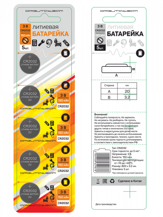 Литиевая батарейка Орбита CR2032 3В — популярный элемент питания формата «монета», отличающийся высокой надёжностью, стабильным напряжением и длительным сроком службы. Благодаря литиевой химии батарейка CR2032 обеспечивает низкий саморазряд, широкий температурный диапазон работы и долгую автономность устройств даже при нерегулярном использовании.