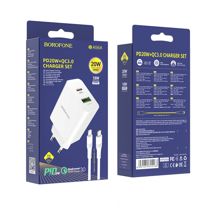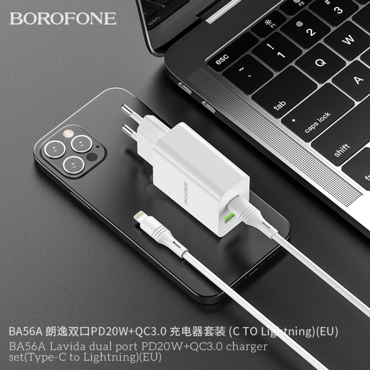 BOROFONE BA56A ЗУ с USB/PD + кабель IOS Lighting (QC3.0+PD20W,3000mA)