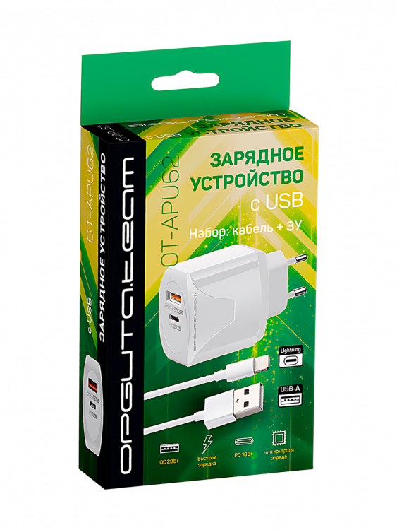 Отзывы о Зарядное устройство для телефона на 2 гнезда, Быстрая зарядка 20W с кабелем Lightning адаптер QC 3.0/PD Орбита OT-APU62
