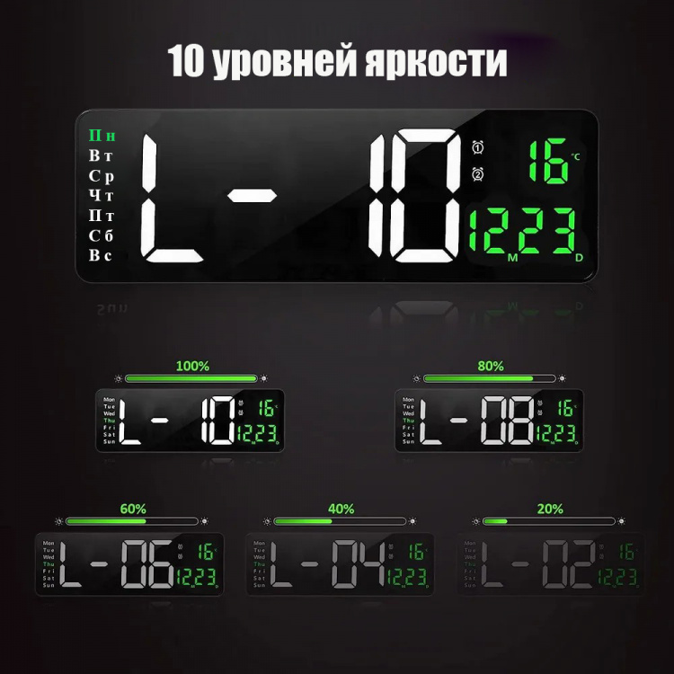Часы настенные электронные с температурой, влажностью и пуль...