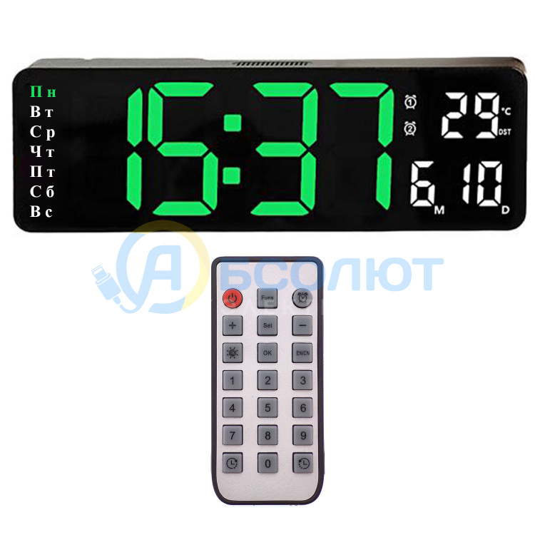 Часы настенные электронные с температурой и пультом Орбита OT-CLW18 Зеленые