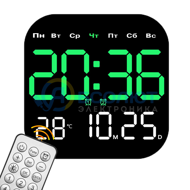 Часы настенные электронные с температурой и пультом Орбита OT-CLW20 Зеленые