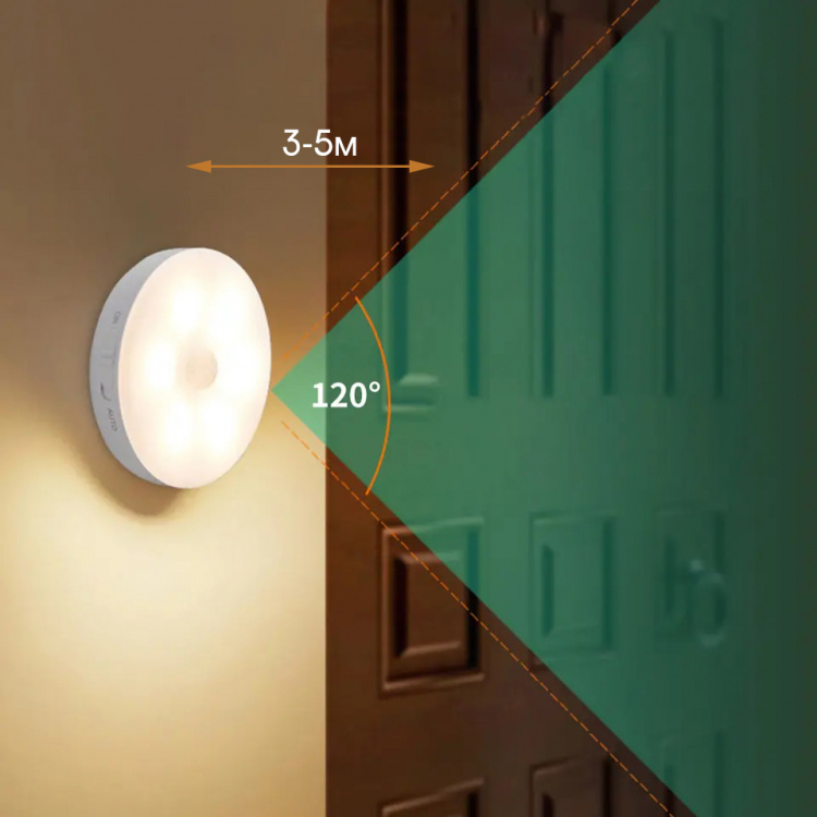 Светильник с датчиком движения, ночник беспроводной Огонёк OG-LDP22 Теплый желтый