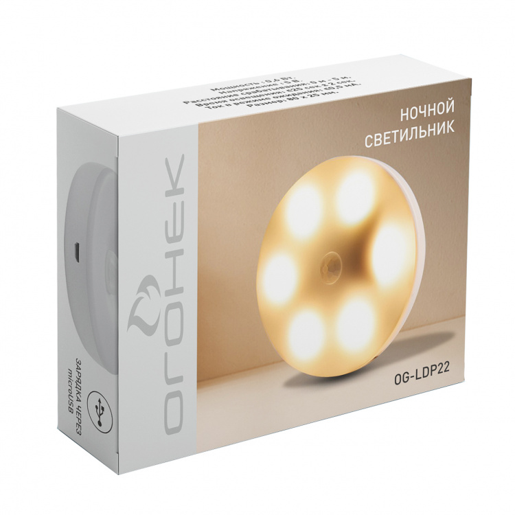 Отзывы о Светильник с датчиком движения, ночник беспроводной Огонёк OG-LDP22 Теплый желтый