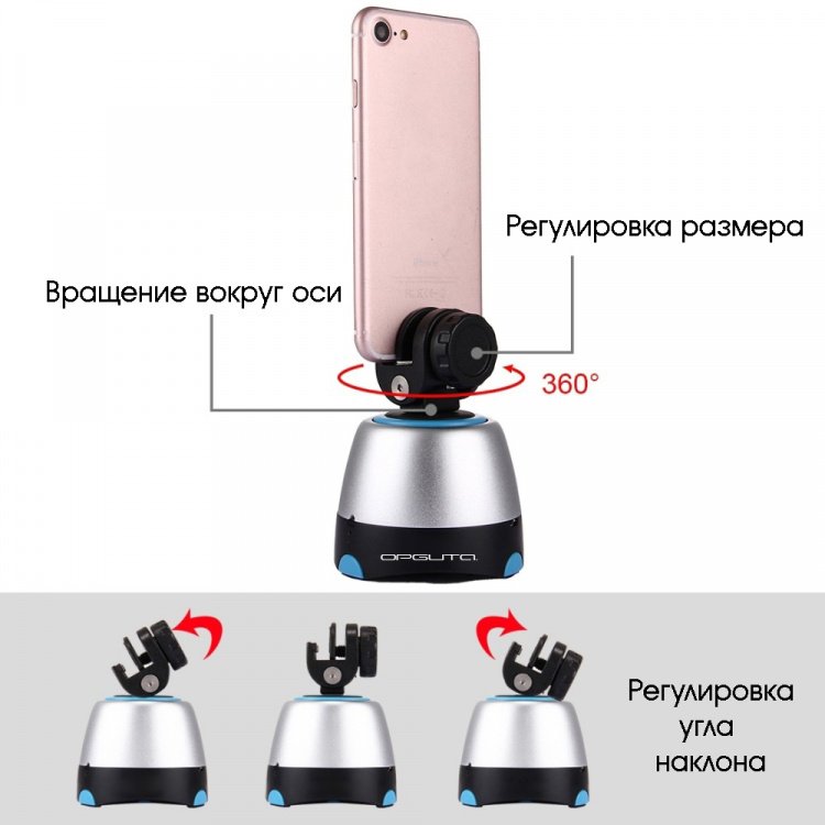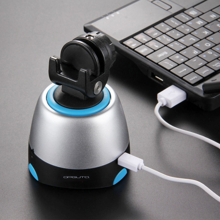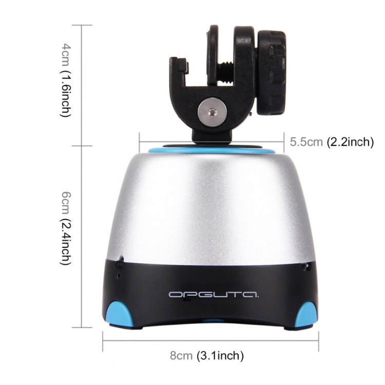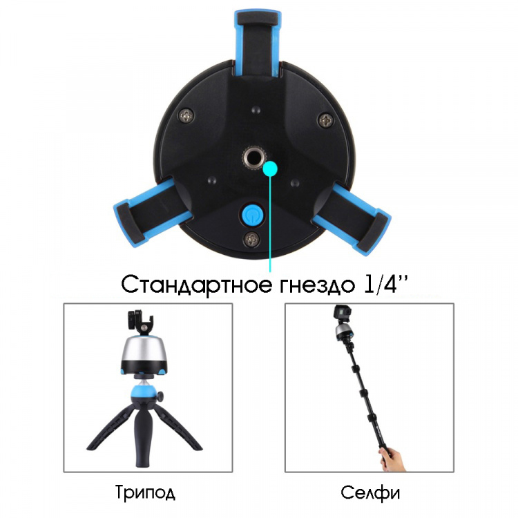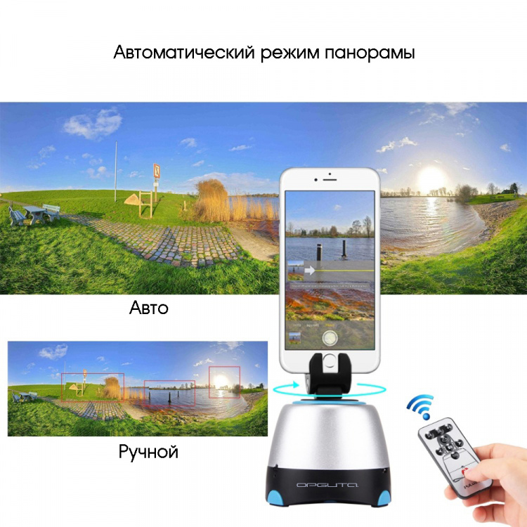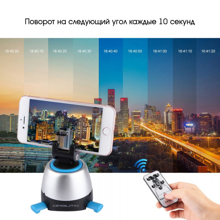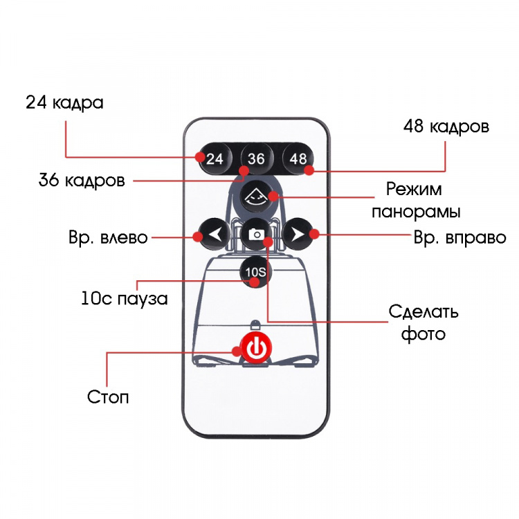 При помощи пульта можно вращать по/против часовой стрелки, изменять скорость вращения, задавать количество кадров для панорамы 26/36/48.