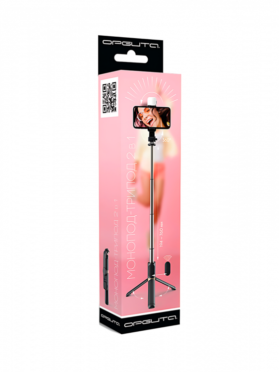 Отзывы о Орбита OT-SMH19 палка для селфи, трипод (194-760мм, пульт Bluetooth, LED)