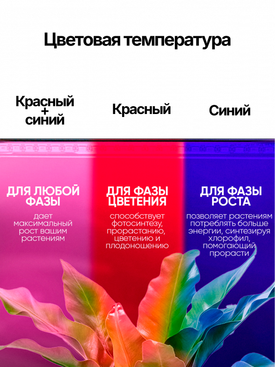 Красный свет способствует фотосинтезу растений, прорастанию, цветению и плодоношению.