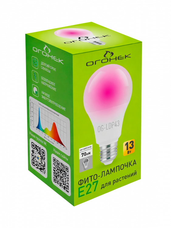 Отзывы о Фитолампочка, фитолампа светодиодная для растений Е27, 13Вт Огонек OG-LDP43