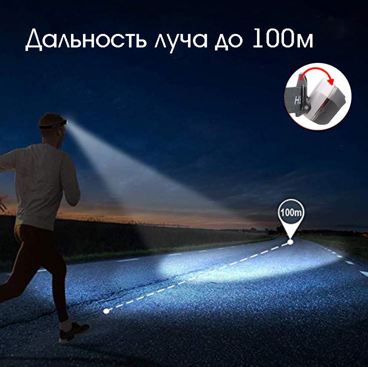 Фонарь налобный с датчиком движения, фонарик аккумуляторный ...
