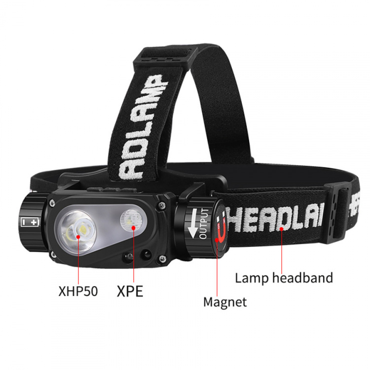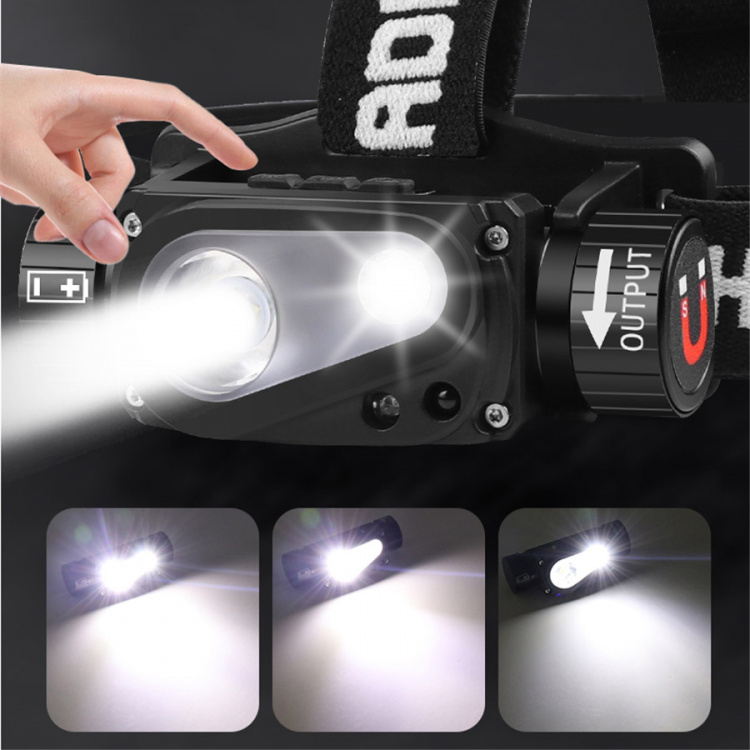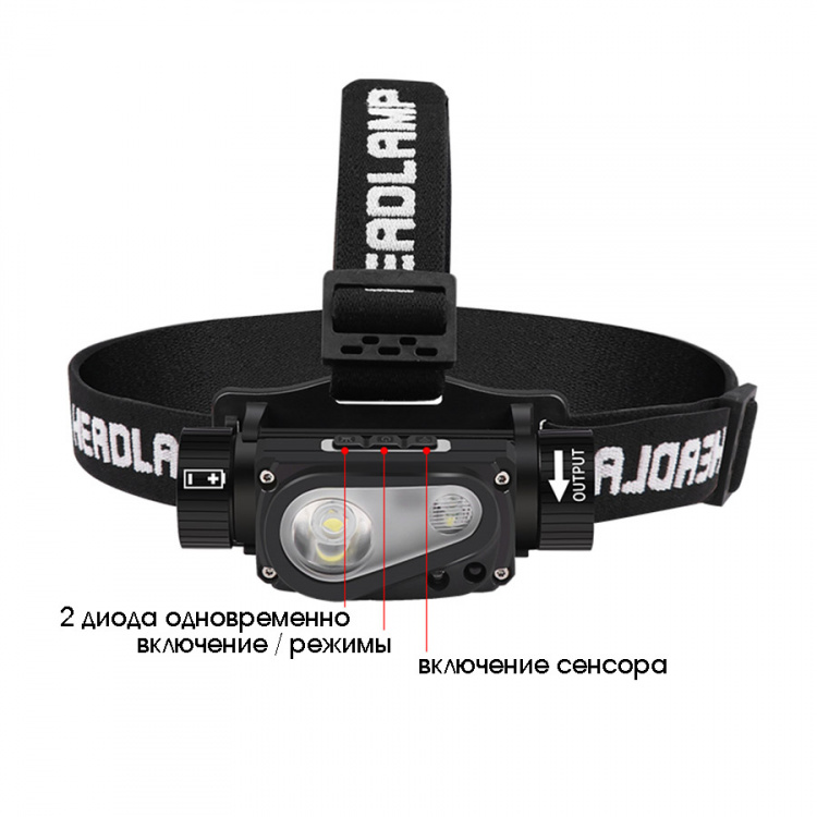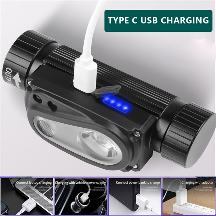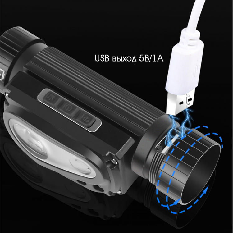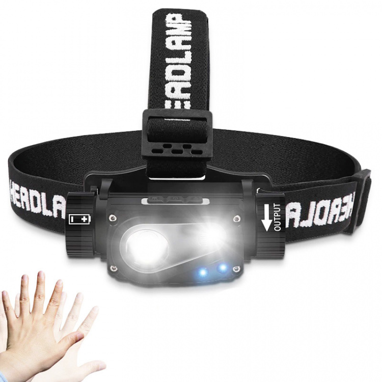 Фонарь налобный с датчиком движения гибкий, фонарик аккумуля...