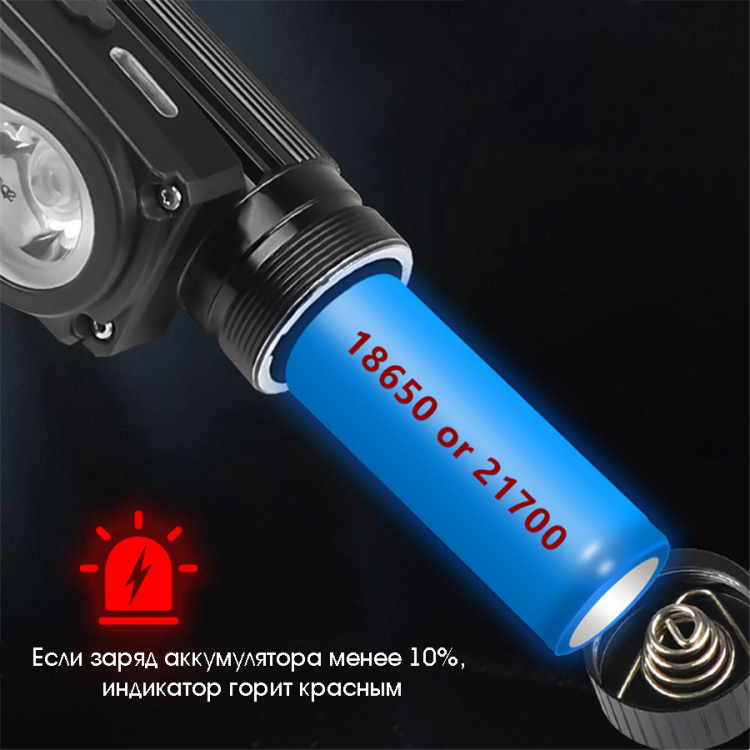 Питание: аккумуляторы 1*18650/21700 (в комплекте 1200мА)