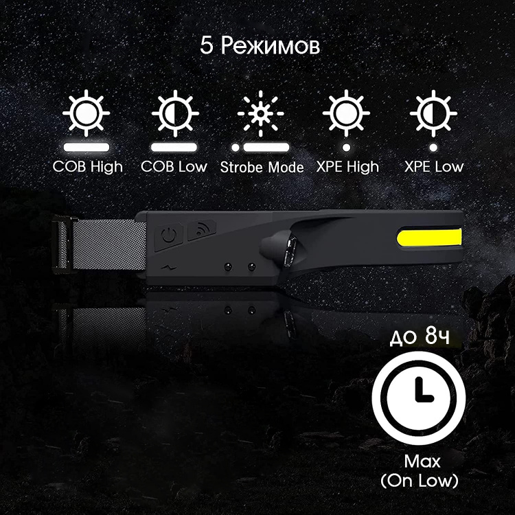 Фонарь налобный с датчиком движения гибкий, фонарик аккумуля...
