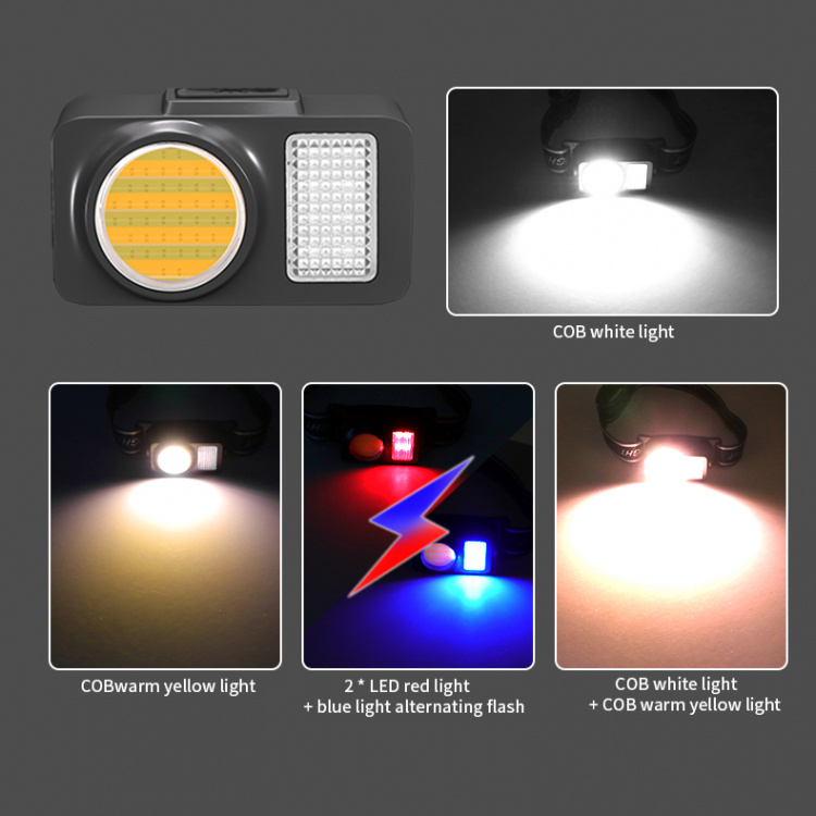 Режимы свечения: 4 - белый тёплый, белый холодный, белый тёплый + холодный, красный + синий стробоскоп