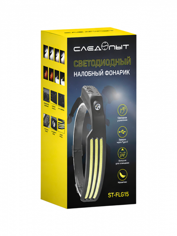 Отзывы о Фонарь налобный с датчиком движения гибкий, фонарик аккумуляторный Следопыт ST-FLG15