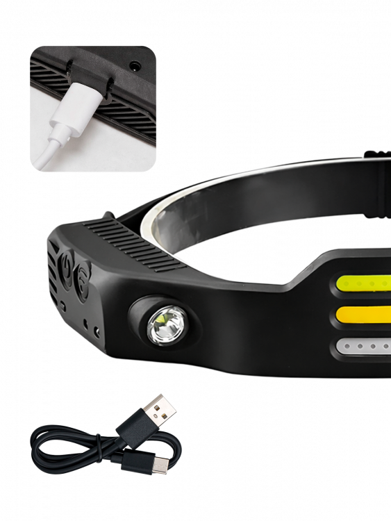Фонарь налобный с датчиком движения гибкий, фонарик аккумуляторный Следопыт ST-FLG15
