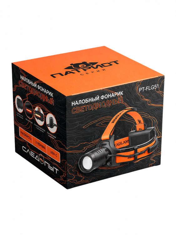 Патриот PT-FLG44 фонарь налобный (2L, 18650, дат.движ)