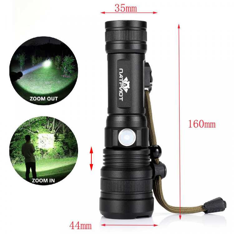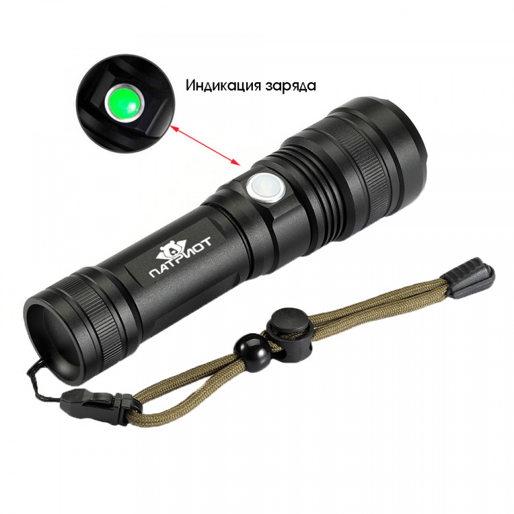 Патриот PT-FLR25 фонарь ручной (1L, 18650.,ZOOM)