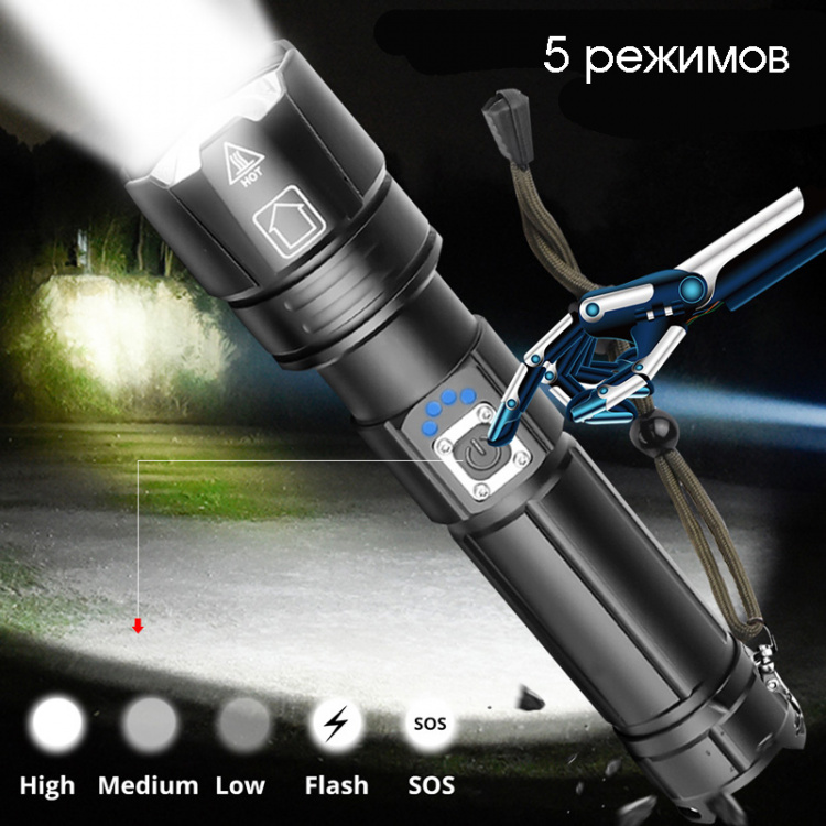 Режимы свечения: 5 - яркий, обычный, эконом, стробоскоп, SOS
