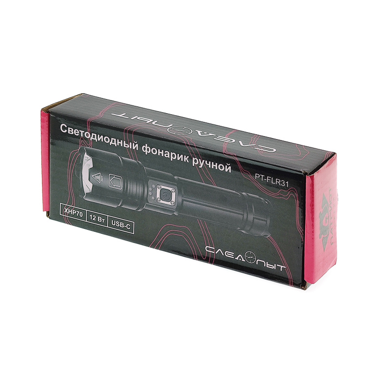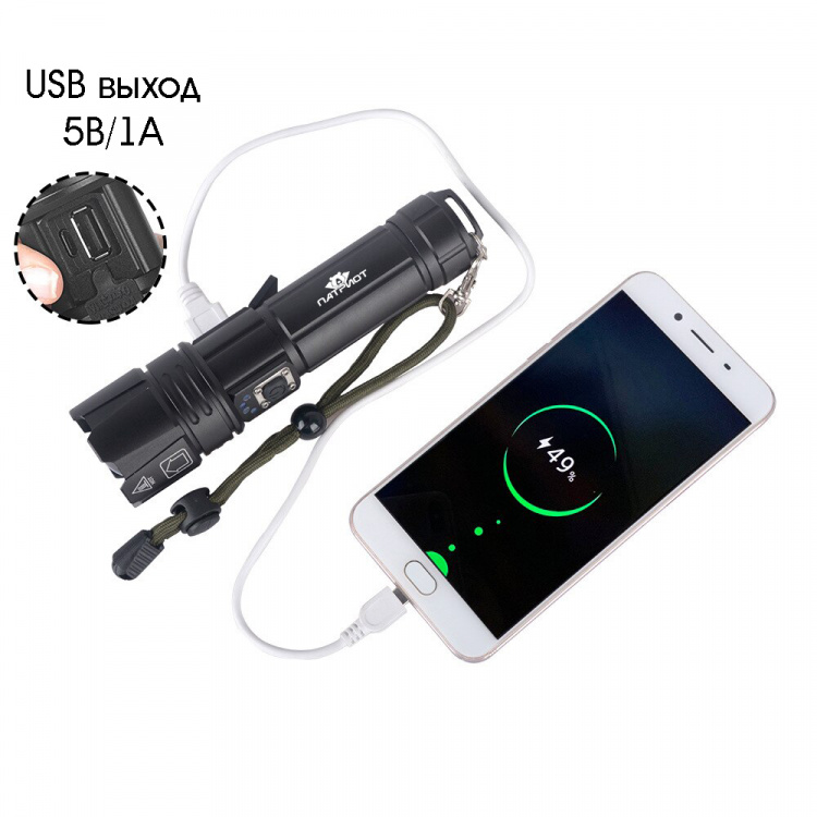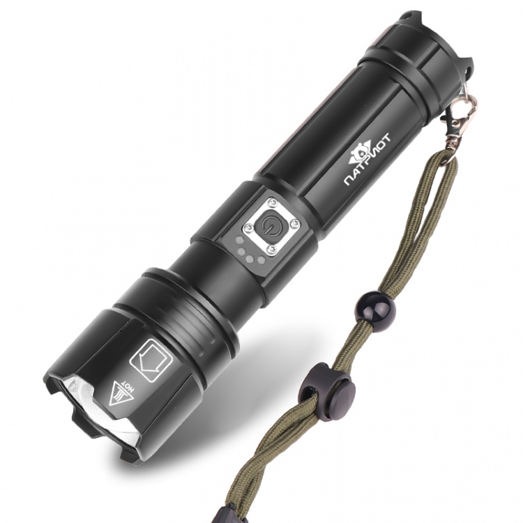 Патриот PT-FLR38 Черный фонарь ручной (1L, 18650.,ZOOM)