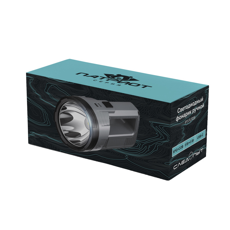 Патриот PT-FLR38B Синий фонарь ручной (1L, 18650.,ZOOM)