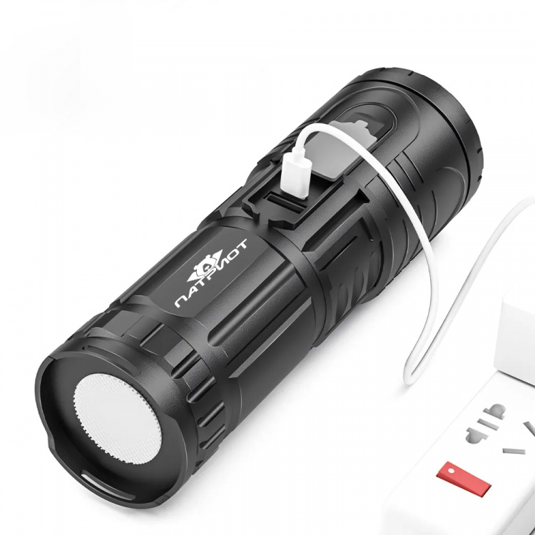 Патриот PT-FLR38 Черный фонарь ручной (1L, 18650.,ZOOM)