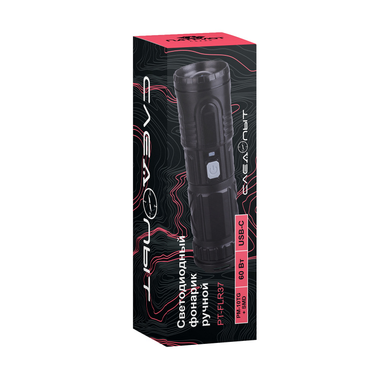 Патриот PT-FLR38R Красный фонарь ручной (1L, 18650.,ZOOM)