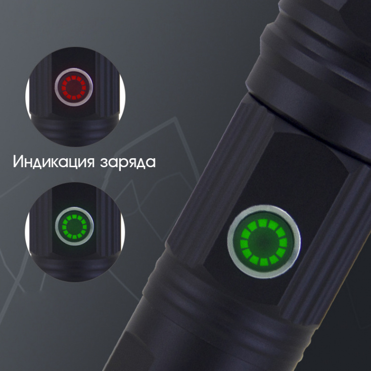 Прочие функции: индикация заряда, выход USB 5B/1A, фокусировка луча