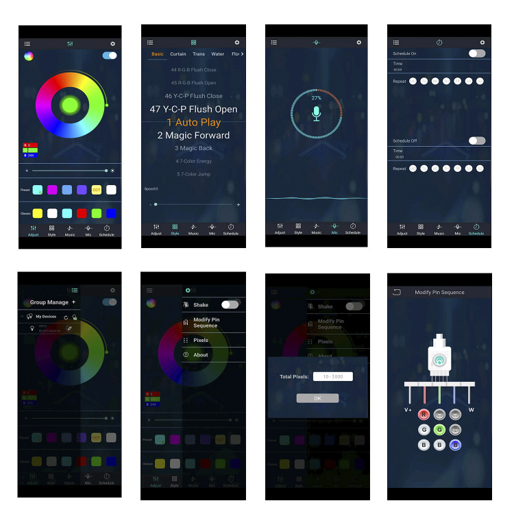 Bluetooth v4.0 контроллер USB WS2812B (5В), приложение для смартфона Magic Lantern