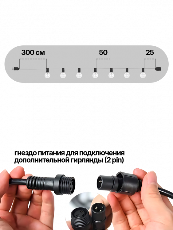 Гнездо питания для подключения дополнительной гирлянды (2 pin)