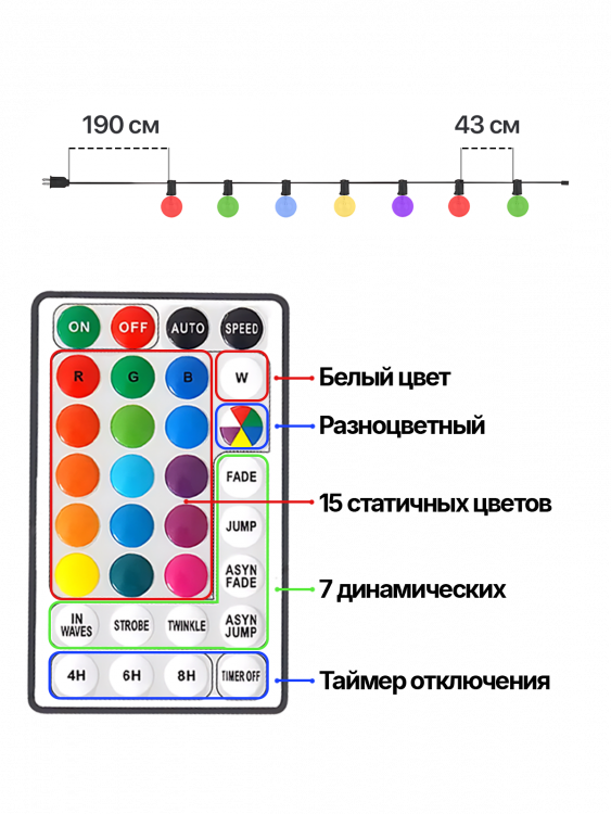 Отзывы о Гирлянда уличная 30 лампочек RGB 15м Огонёк OG-LDG25