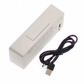 Питание: 5В/500мА - кабель USB-штекер 3.5мм (в комплекте) / 2*ААА - ТОЛЬКО ДЛЯ СОХРАНЕНИЯ НАСТРОЕК ЧАСОВ! (в комплект не входит)