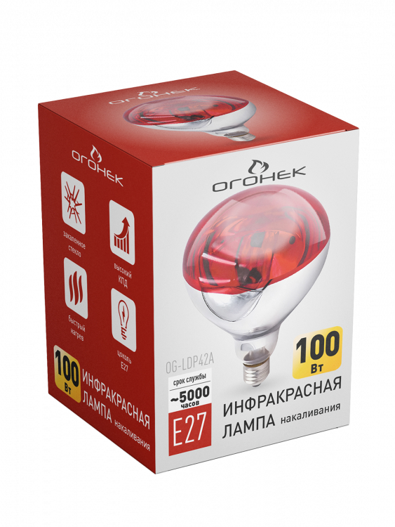 Инфракрасная лампа для обогрева птиц и животных, 100 Вт, цоколь Е27 Огонёк OG-LDP42A