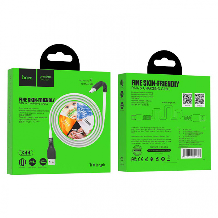 HOCO X44 Белый кабель USB 2.4A (microUSB) 1м
