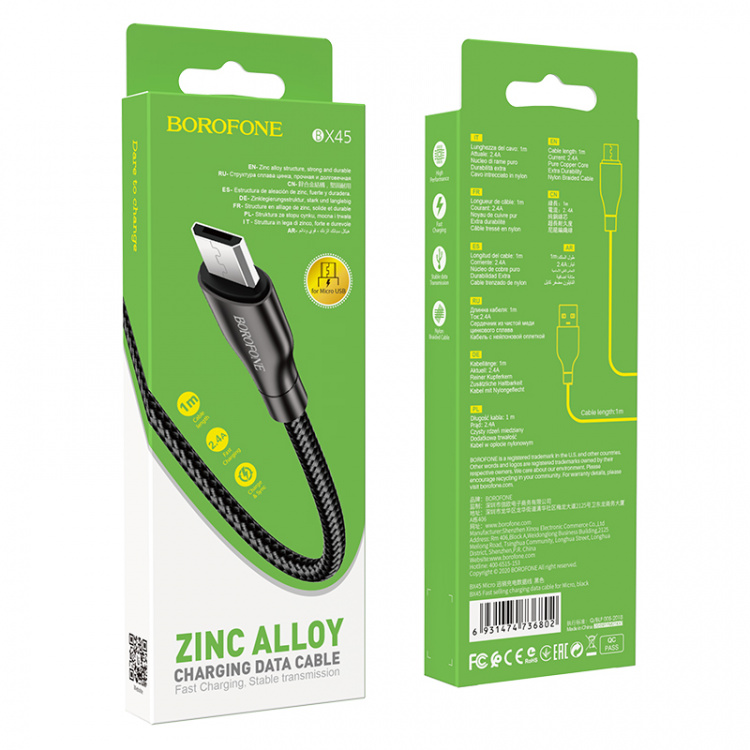 BOROFONE BX45 Черный кабель USB 2.4A (microUSB) 1м