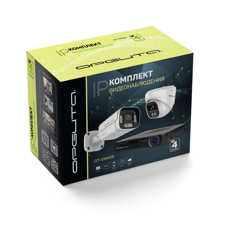 Орбита OT-VNK03 IP комплект видеонаблюдения (4 камеры, 1080P...
