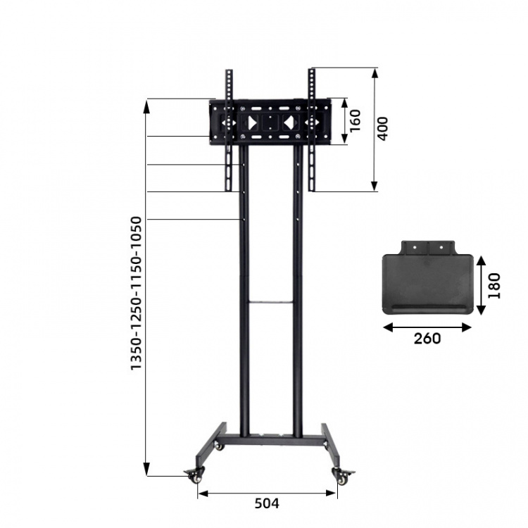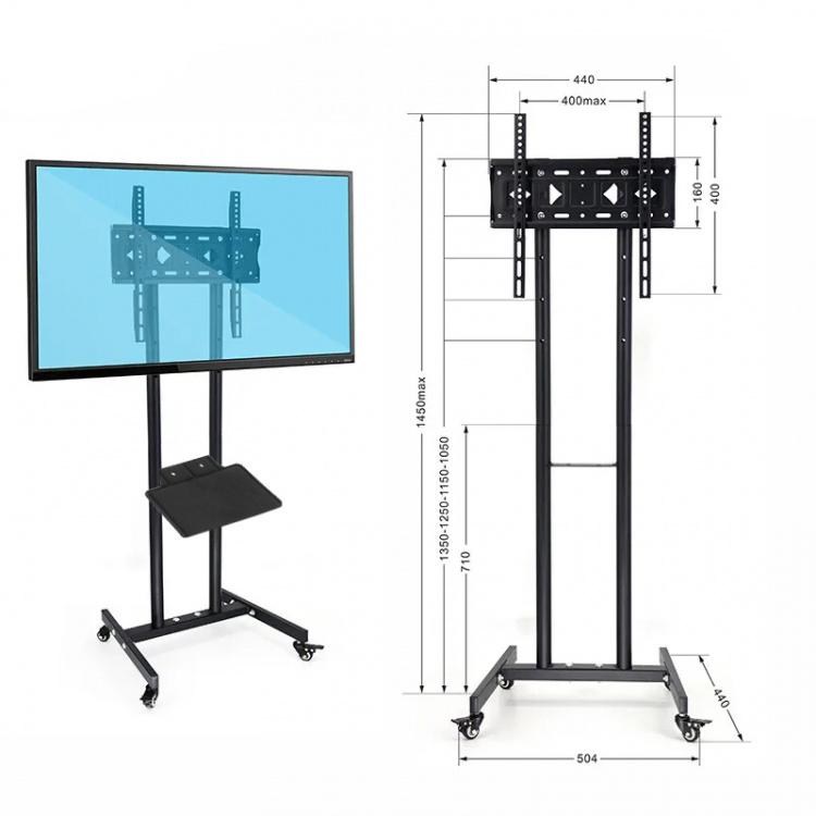 Регулировка высоты телевизора осуществляется легко и быстро с помощью специальных винтов: 1050 мм ~ 1350 мм.