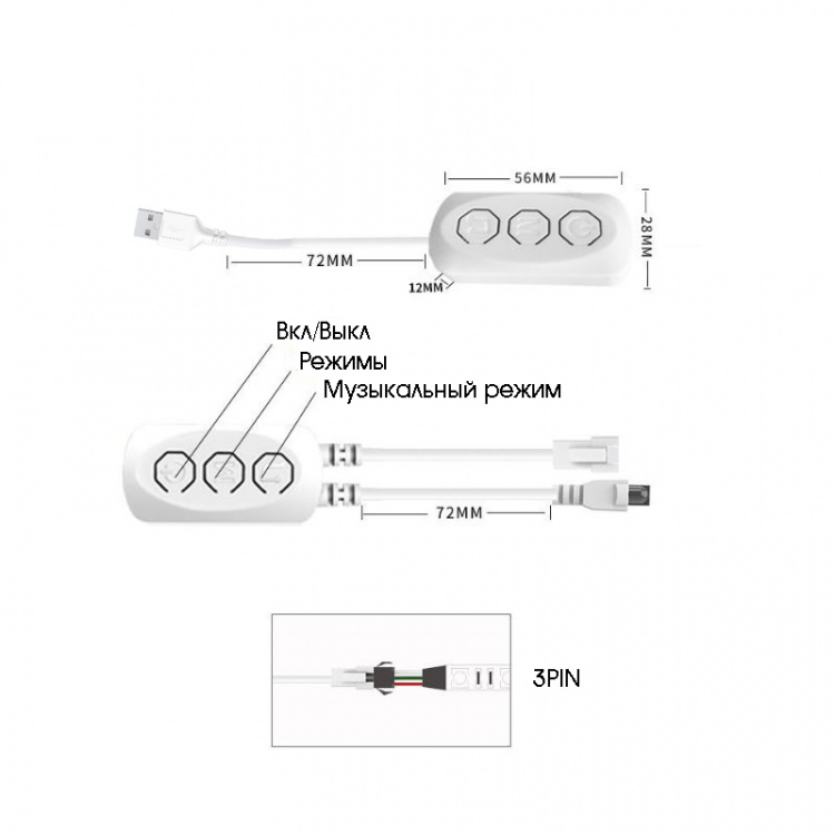 Огонек OG-LDL48 LED контроллер USB 5В (Wi-Fi. RGB, 3PIN, пул...