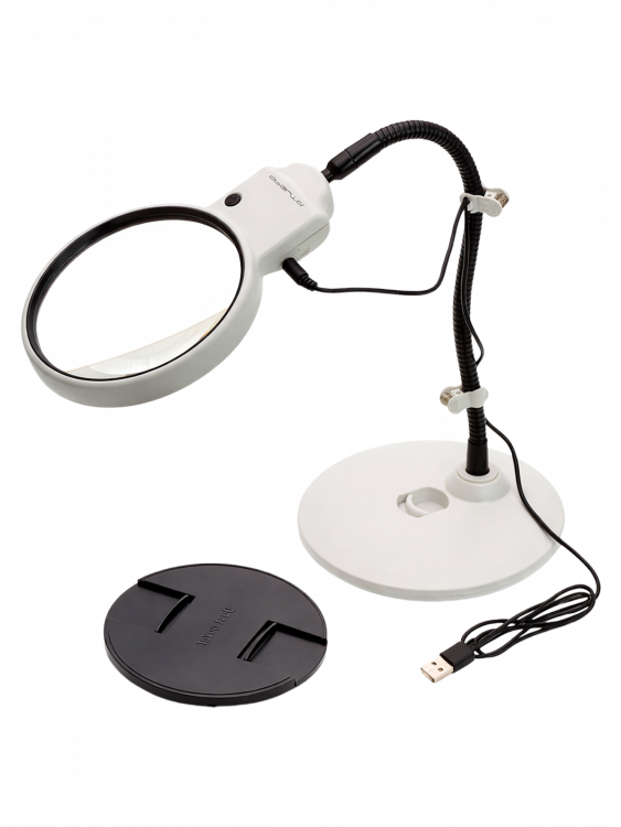 Лупа настольная с подсветкой на гибкой ноге с прищепкой 2 в ...