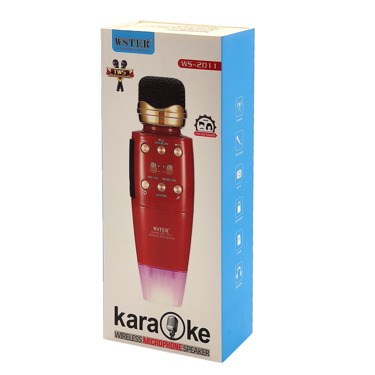WSTER WS-2011 Розовый микрофон беспроводной (Bluetooth, динамики, USB)