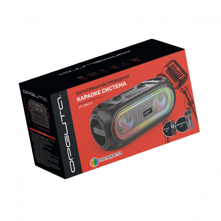 Орбита OT-ERM14 Черная караоке система с RGB подсветкой (2 микр, Bluetooth 5.0)