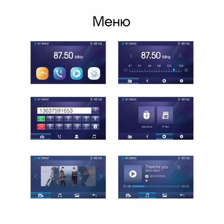 | модулятор, ЗУ в прикуриватель, клипса, пульт ДУ, кабель AUX, инструкция на Русском |