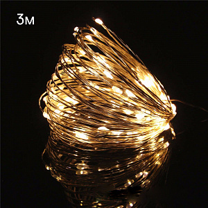 Огонек OG-LDG05 гирлянда LED Белая теплая (3м,2*AA) (УПАКОВКА 10ШТ)