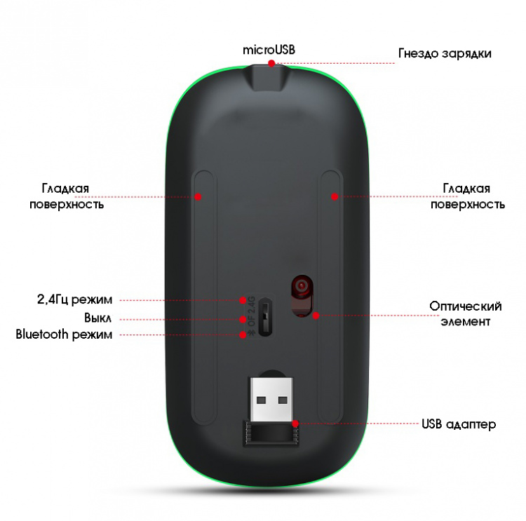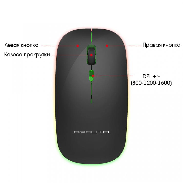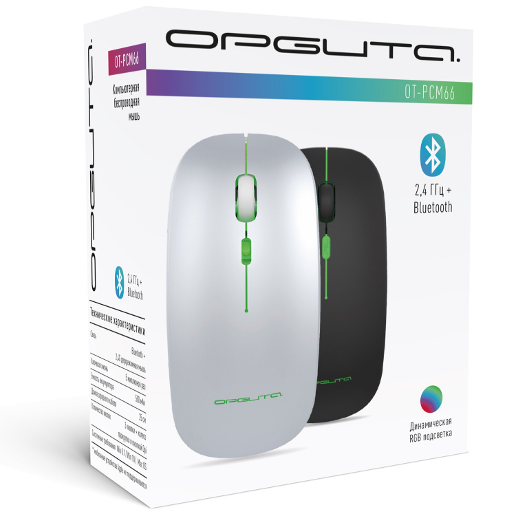 Мышь беспроводная бесшумная с подсветкой 2 в 1 Орбита OT-PCM66 Черная